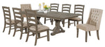 Bring relaxed sophistication and everyday functionality to your dining space with this thoughtfully designed 9-piece dining set. Featuring an extendable dining table, two fully upholstered host chairs, and six coordinating side chairs, this set blends comfort and rustic charm for a welcoming atmosphere.