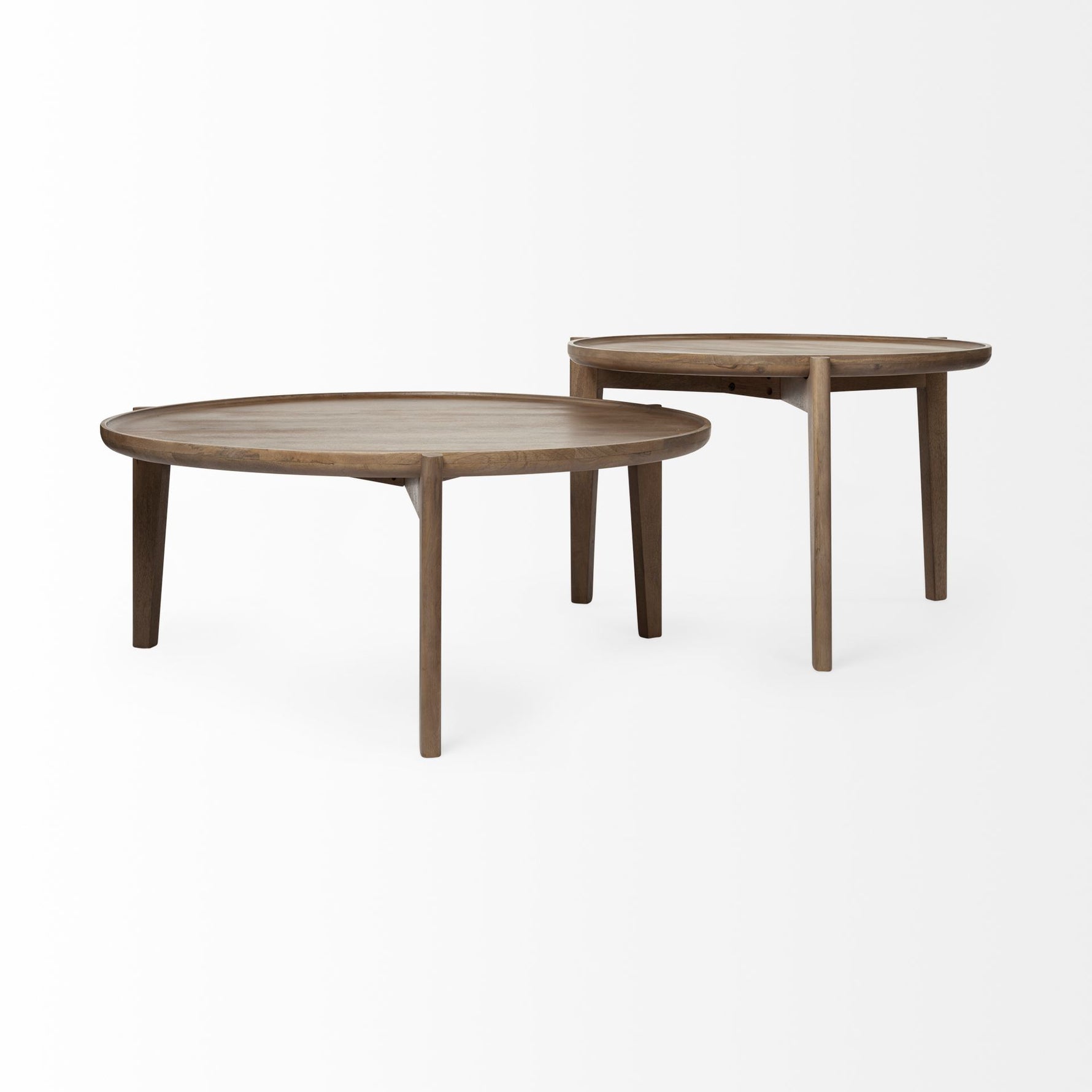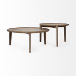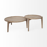 Set of Two Brown Solid Wood Round Nested Coffee Tables