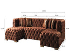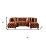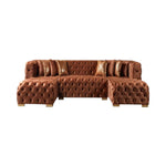 HomeRoots Tufted Orange Velvet Modular U Shaped Sofa and Chaise Sectional With Toss Pillows