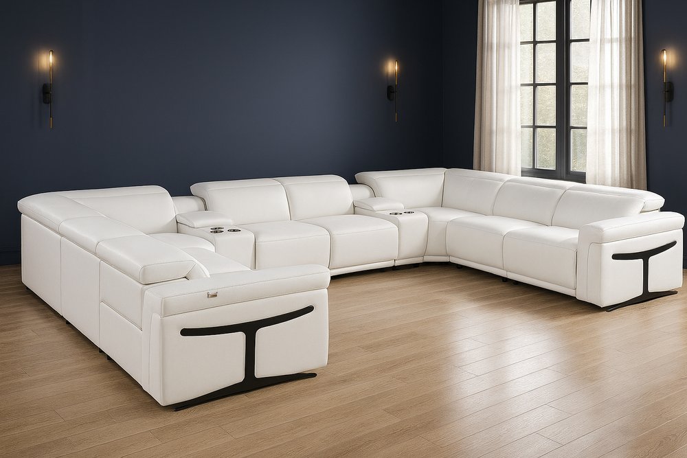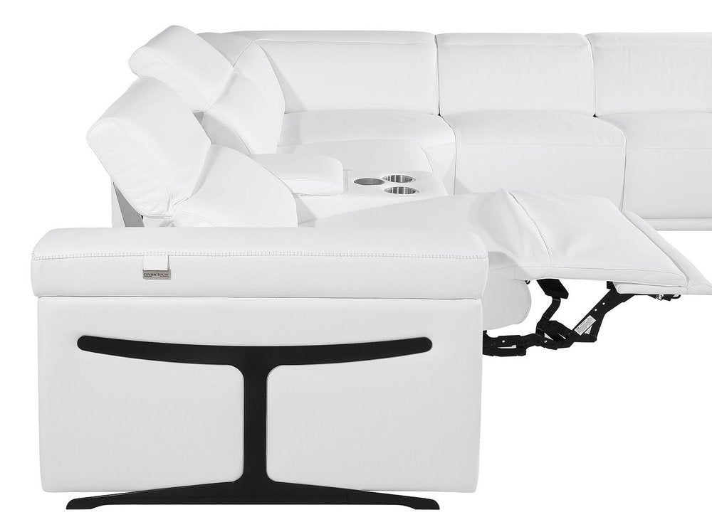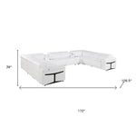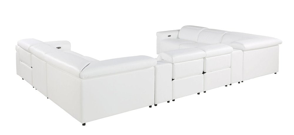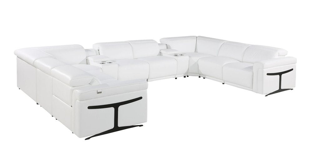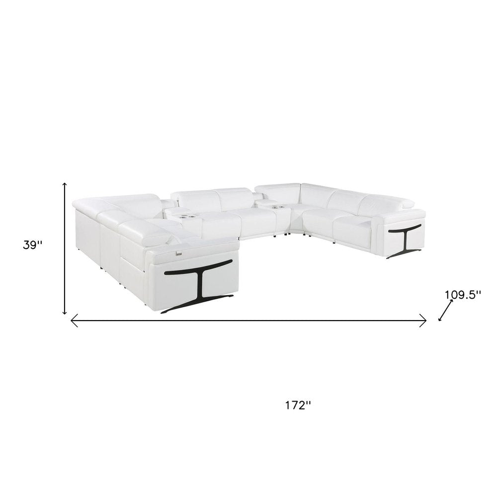 White Italian Leather Power Reclining U Shaped Ten Piece Corner Sectional With Console