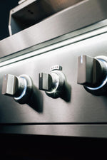 Every flame tells a story. The Quest is designed for those who live to grill and never settle, bringing commercial-grade power and precision to the forefront. With 18,000 BTU burners that deliver flawless heat control and the included rib rack, smoker box, griddle plate, multi-position warming racks, and rotisserie kit for complete versatility, expect every meal to be an experience worth remembering. Interior halogen lights and waterfall LED accents illuminate late-night cooks, while bezel lighting shifts from white to red, providing a clear visual cue when burners are on. Crafted from durable #304 stainless steel and backed by the Gold Standard Warranty, the Quest is built for those inspired by craft, flavor, and the pursuit of perfection.