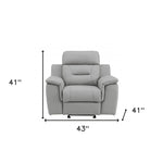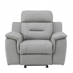 Enhance your space with a bit of present-day loveliness and exceptional practicality with this stylish and excellently made recliner chair. This chair is a durable piece and has a comfortable grey leather air upholstery. It will definitely mesmerize all those who see it. Furthermore, this chair features a recliner mechanism, which will ensure even more relaxation. It truly mixes splendid rest with sturdiness perfectly. To ensure this, it has a foam density of 2.4 for the seat and the arm, and the foot rest features a foam density of 2.0. The seat also includes a pocket coil with foam for added ease. To complete this stunning appearance, it shows off a fabulous style spot-on for the modern home. As for measurements, theyre 41 for height, 43 for width, and 41 for depth, and it weighs 121 pounds. When you need to relax and rest after a long day, this chair is the best you can find. It will fit in excellently with any interior, and would be a marvelous decoration for your home.